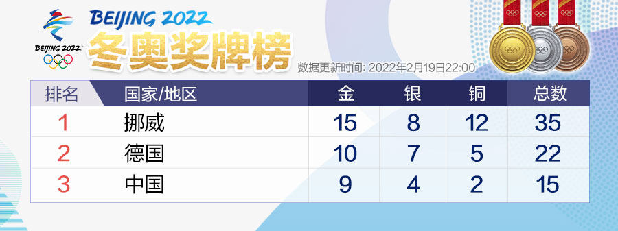 金牌+1后,中国冬奥军团金牌总数9枚,银牌总数4枚,铜牌总数2枚,暂列奖牌榜第三,创中国冬奥历史最好成绩。