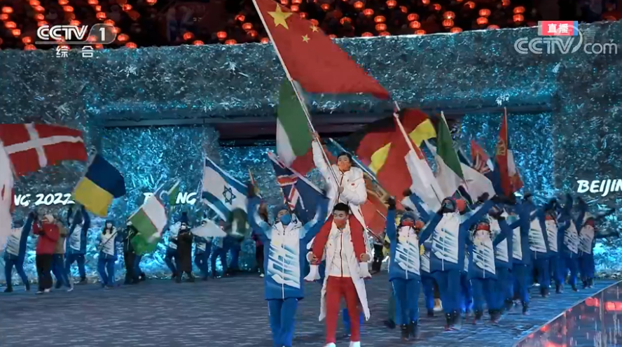 2月20日晚,北京冬奥会闭幕式在国家体育场鸟巢举行。在代表团旗帜入场环节,中国体育代表团两名旗手徐梦桃和高亭宇用一种独特的方式挥舞着五星红旗入场——徐梦桃坐在高亭宇的肩膀上,成为全场“最高的”旗手。