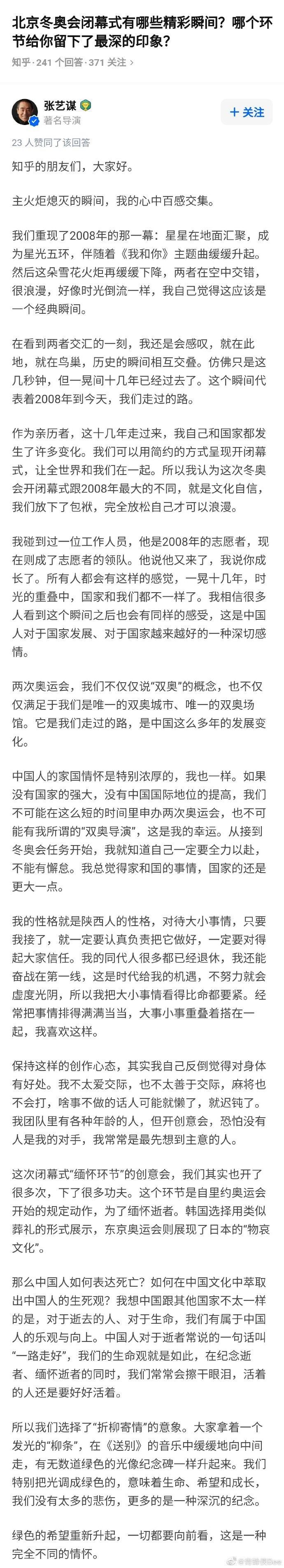 2022北京冬奥会闭幕式结束后,张艺谋发声: