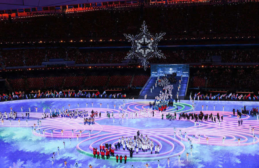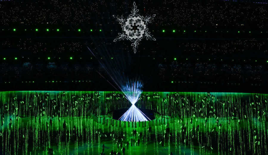 “‘冬梦’从纯色冰晶幻化为斑斓的彩色,舞台和观众席上2万只灯笼立刻随之被点亮,闭幕式在一片绚烂灯火中拉开帷幕。”闭幕式导演沙晓岚说,“点亮会徽,既点亮了冬奥会的宗旨,也点亮了舞台、温暖了冬夜。”