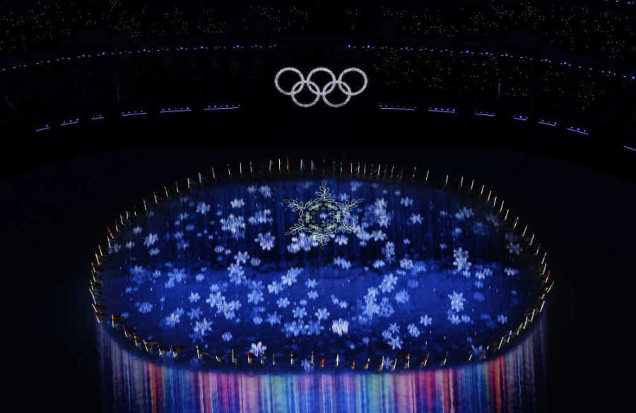 2月20日晚,北京第二十四届冬季奥林匹克运动会闭幕式在国家体育场举行。这是开场“点亮”环节。