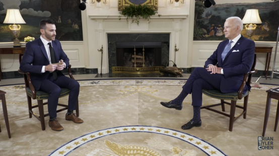 拜登接受播客主持人布莱恩·泰勒·科恩采访视频截图