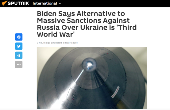 俄卫星社:拜登称,如果不在乌克兰问题上对俄采取大规模制裁,替代选项就是(开启)“第三次世界大战”