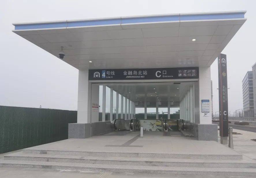 金融岛北站位于金融岛中环路与银贝街交叉口,现启用B、C两个出入口。