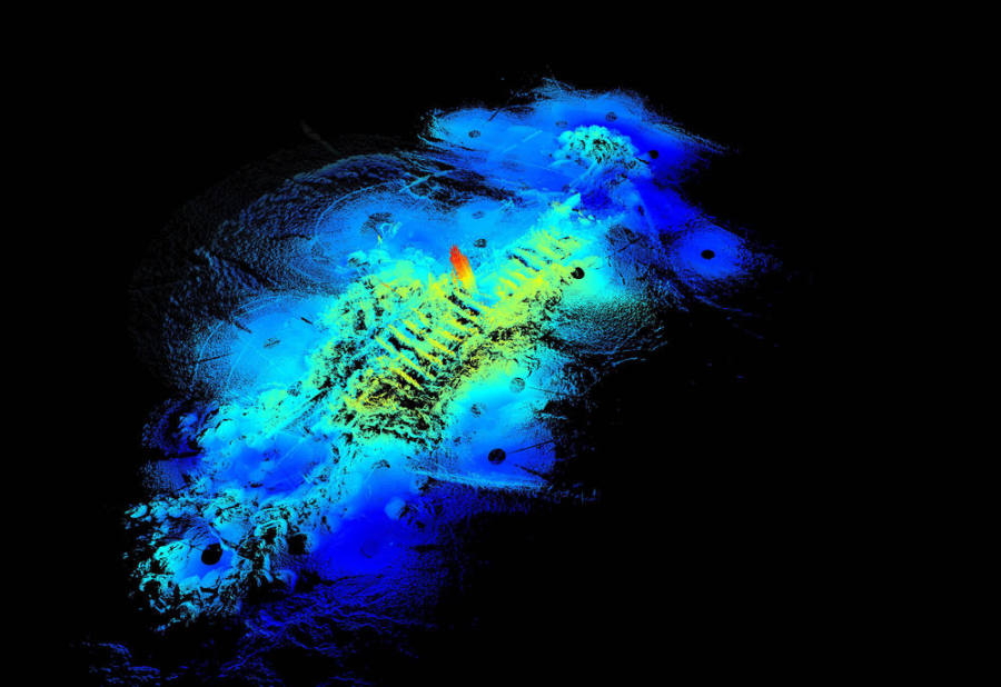 这是2021年“长江口二号”古船多波束声呐扫测合成图。新华社发(上海市文物局供图)