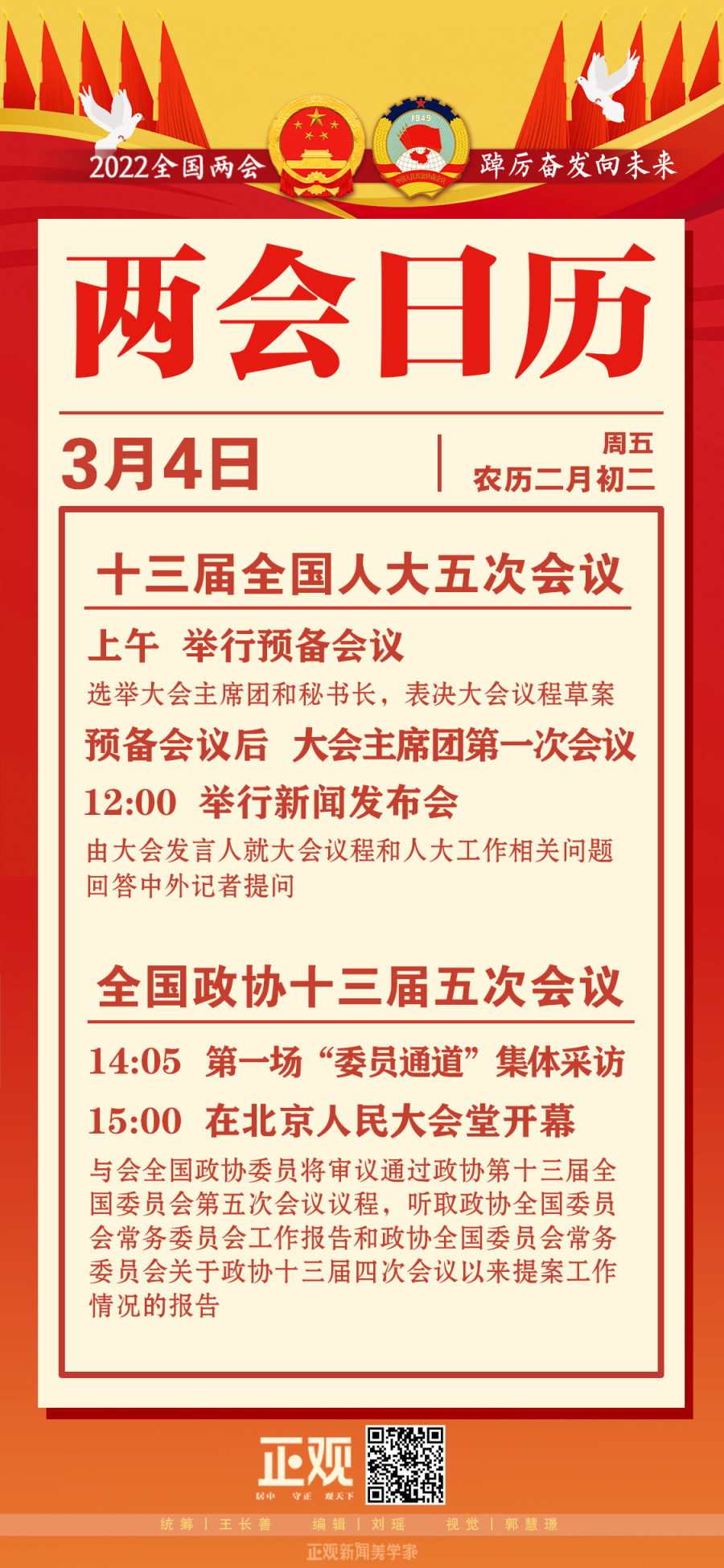 2022年3月4日周五,农历二月初二,两会日历请收好↓