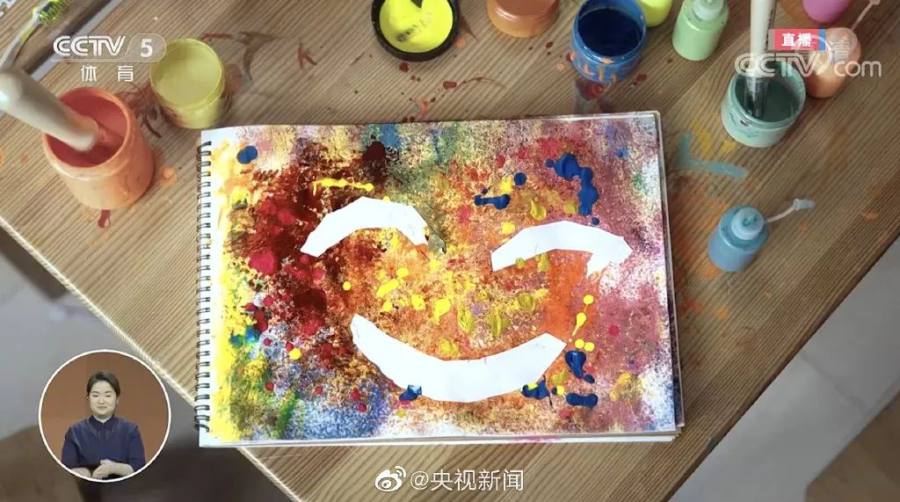 北京冬残奥开幕式,视力障碍的孩子根据自己的想象,在画布上泼洒颜料,画出自己心中的五彩缤纷。一幅笑脸被喷绘出来,这是孩子们心中的美丽,这是孩子们心中的快乐!