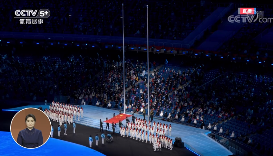 冬残奥会开幕式上,随着嘹亮的国歌声响起,五星红旗冉冉升起。舞台一侧的手语方阵中,舞蹈艺术家、中国残疾人艺术团团长邰丽华带着残疾人演员们,深情地用手语“唱”着国歌,带给人们心灵的震撼。