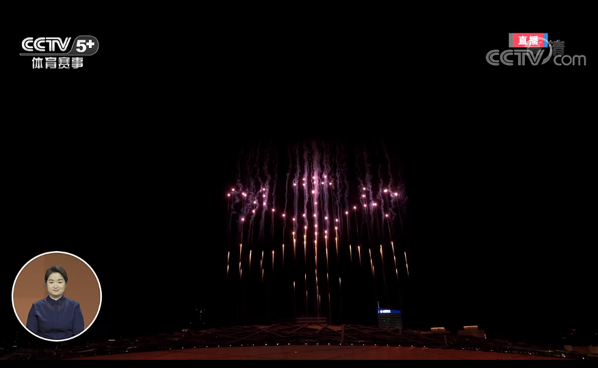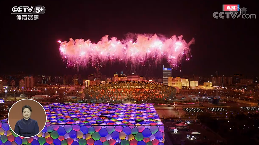 6、鸟巢上空绽放紫色雪花