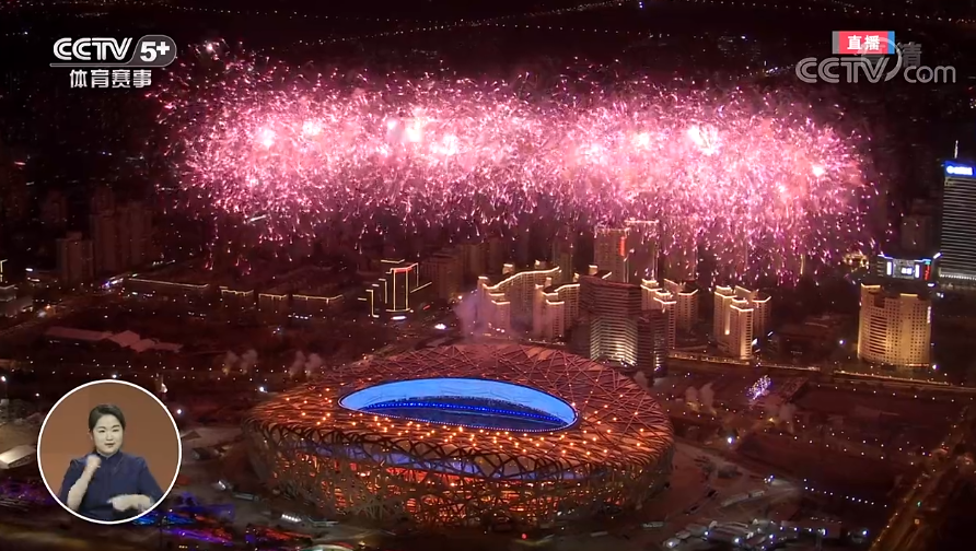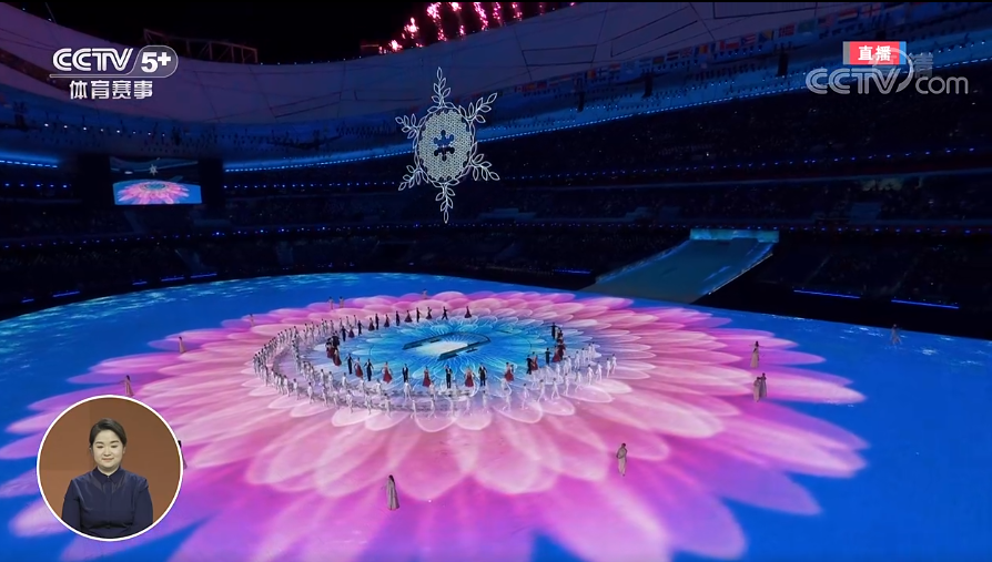 由特效焰火构成的紫色雪花,唯美的绽放在夜空中。为本届冬残奥会祝福、喝彩!