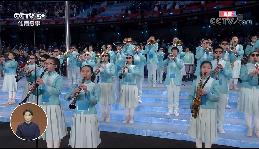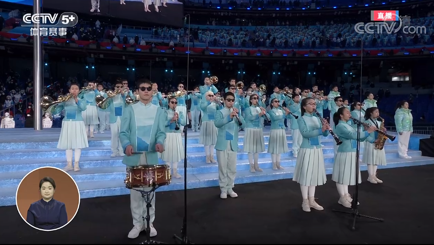 伴随着会旗的升起,47名视力残疾学生奏响国际残奥委会会歌。这些孩子来自全球规模最大的盲人管乐团——重庆市特殊教育中心扬帆管乐团。