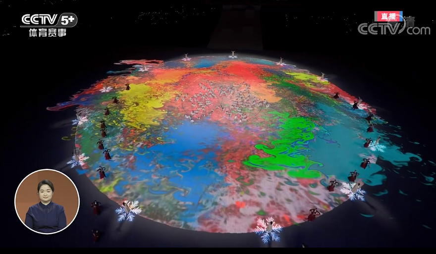 在《冬残奥圆舞曲》浪漫的旋律里,画中的色彩在场地中央如溪流汇海,似灿烂朝霞。最美的笑脸绽放在天地之间,这是残健融合的舞者们用生命之光照亮的梦想。