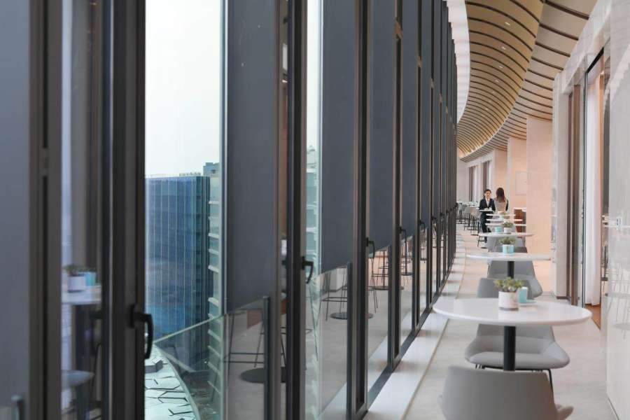 在一楼西厅的7*24小时美好生活服务区,作为24小时金融自助化服务的新生活体验成为龙湖金融岛的首创,融入了自助银行、咖啡机器人、自助KTV、自助共享打印机、电子书吧、泡泡玛特、微型超市等24小时提供服务的自助设备,与大楼和营业厅能做到分时段管理,为大家打造了一个真正能提供全天候贴心服务的多元化场景。