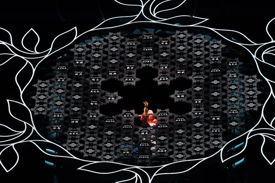 由于微火的形式和点火装置的设计,可以确保火炬手的安全,我们才采用了这种方式。走上火炬台,他通过触摸雪花火炬来完成点火。那一刻,他也在用触摸的方式和世界交流,在认知世界。火炬点燃,照亮天地,他仿佛也在用内心点亮这个世界。这是我认为非常感人的时刻。