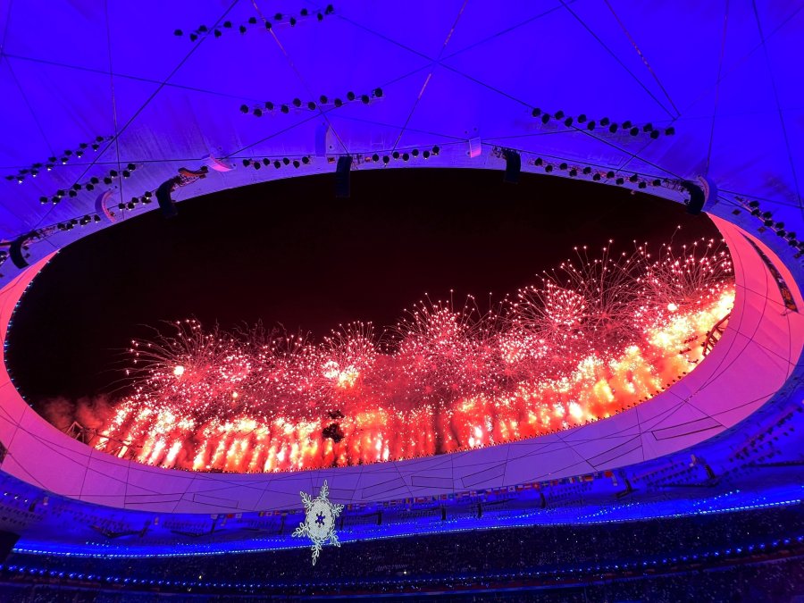 北京冬残奥会开幕式依然运用了“鸟巢”现场超大的地面屏幕,但是却讲述了不同的故事。冬奥会开幕式讲述了一朵雪花的故事,闭幕式展现了蔚蓝色的浪漫和红色的火热。到了冬残奥会开幕式,我们用很多颜色,来融化这块“坚冰”。