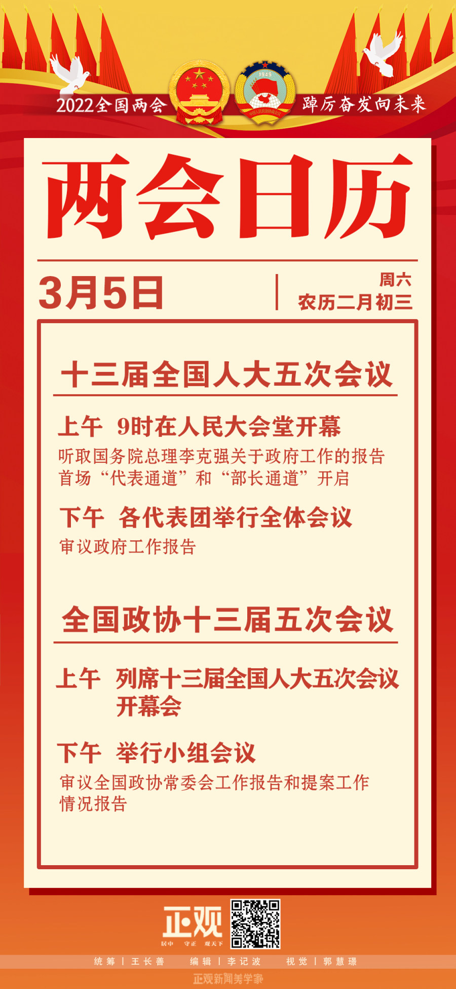 2022年3月5日周六,农历二月初三,两会日历请收好