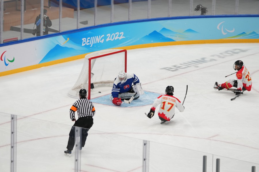 中国残奥冰球队首战7-0胜斯洛伐克队