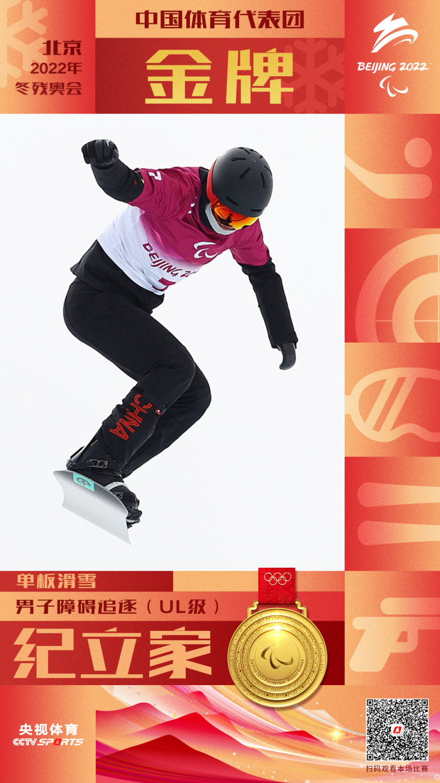 中国代表团第7金!中国选手纪立家夺得单板滑雪男子障碍追逐(UL级)金牌