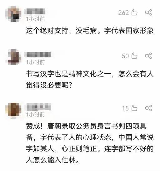 有网友认为,学好汉字,写好汉字,是每一个中国人都应该做的事,中国字是传统文化,本就应该大力推广,公务员应该做出表率。