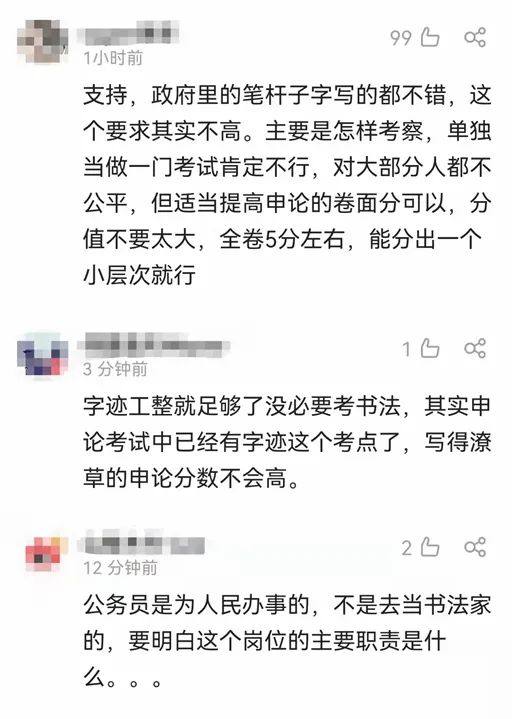 也有网友说,其实申论考试在一定程度上已经是对硬笔书法的筛选,可以把申论的书写作为加分项,不需要单独开考一门。