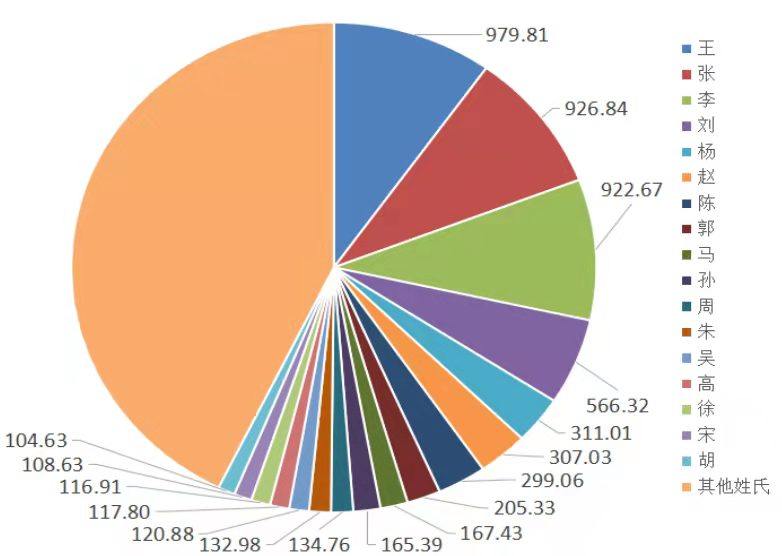 河南省第七次全国人口普查结果显示,全省常住人口中,排名第一的河南“大姓”是“王”姓,共有979.81万人,占全省常住人口的9.9%。随后依次是“张、李、刘、杨、赵、陈、郭、马、孙”,前十“大姓”共有4850.89万人,占全省常住人口的48.8%。