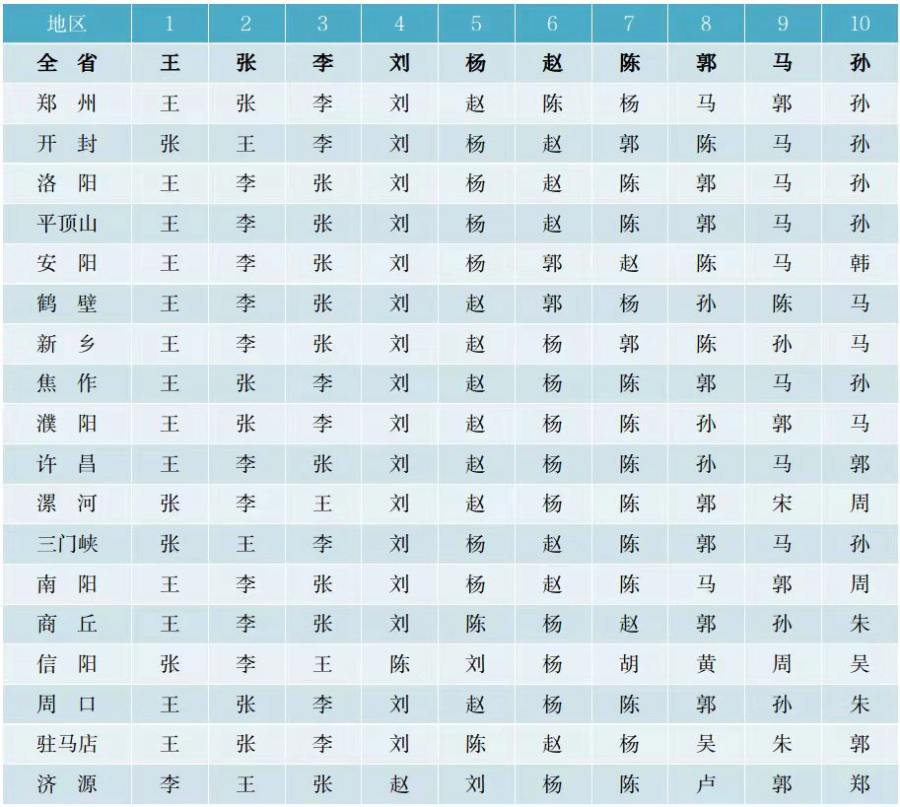 3月7日,记者从河南省统计局获悉,依据河南省第七次人口普查数据,河南最新百家姓排名出炉。