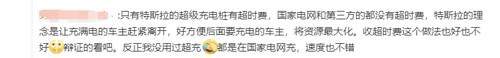 有网友表示,只有特斯拉的超级充电桩有超时费,国家电网和第三方的都没有超时费,特斯拉的理念是让充满电的车主赶紧离开,好方便后面要充电的车主,将资源最大化。收超时费这个做法也好也不好辩证的看吧。反正我没用过超充,都是在国家电网充,速度也不错