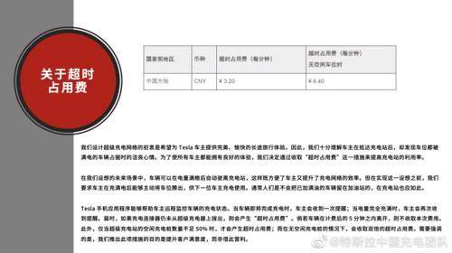 2020年4月,特斯拉中国充电团队确认了当超级充电站没有空闲车位的时候,将会收取6.4元/分钟的超时占用费。