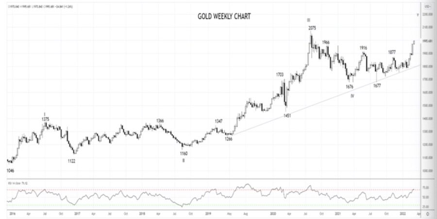 “我们预计金价将测试并突破2020年的高点2075美元,然后向2200美元移动,完成从2016年11月低点1046美元的五波上涨。”西卡摩尔表示。
