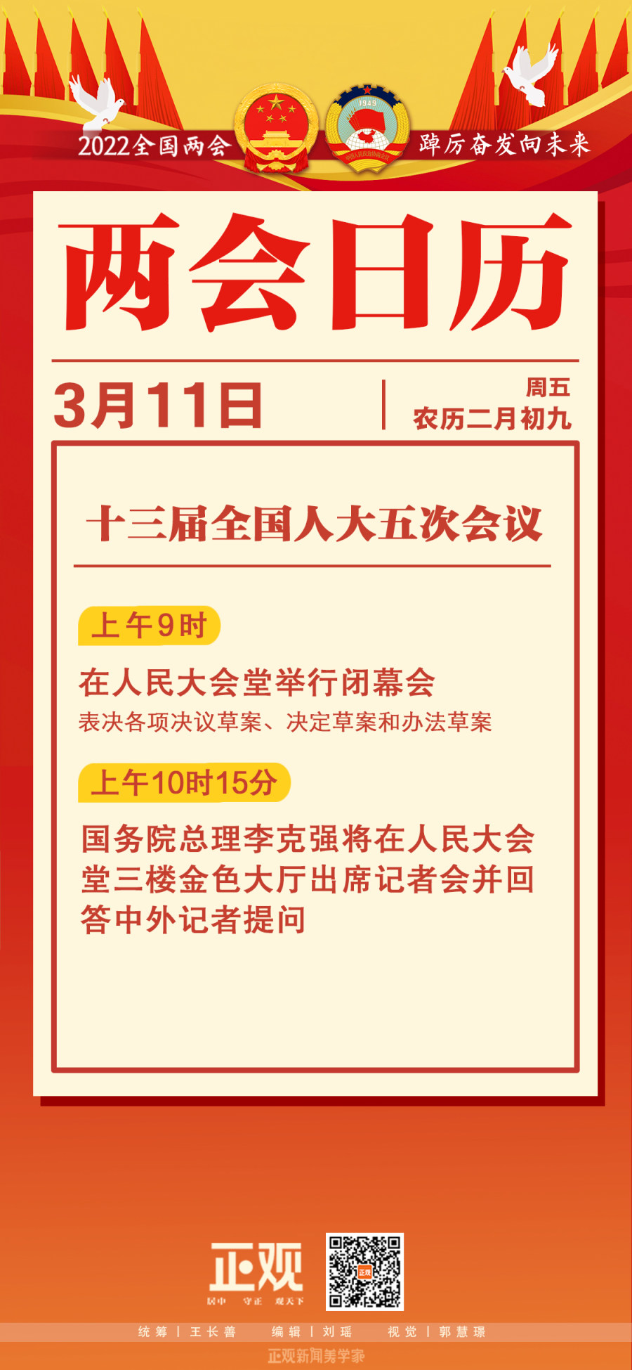 两会日历|11日:十三届全国人大五次会议闭幕,李克强总理出席记者会