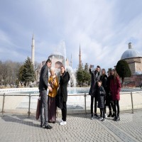 2月1日,游客在土耳其伊斯坦布尔的圣索菲亚大教堂附近观光游览。(本文配图均自新华社)
