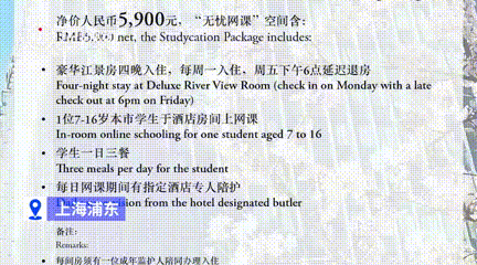 上海五星级酒店推5900元“网课套餐”:一对一陪上网课,包小朋友一日三餐