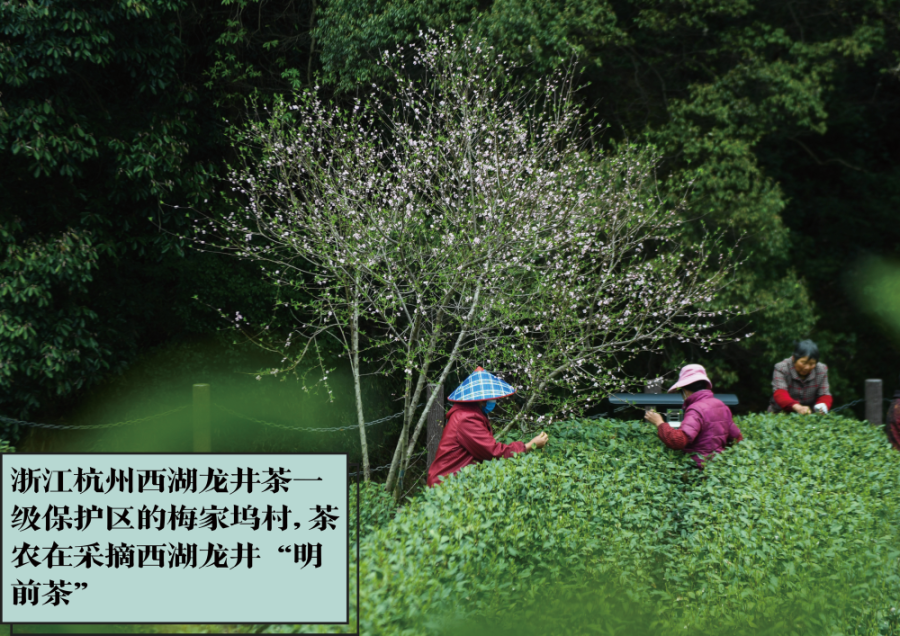 西湖龙井茶已经正式开采。明前春茶稀缺珍贵,茶农们带着草帽在茶园里,一叶一叶仔细采摘。今年,西湖龙井茶有了“身份标识”,通过标识,可以追溯鲜叶来源地、茶树品种和鲜叶采摘、加工等过程。