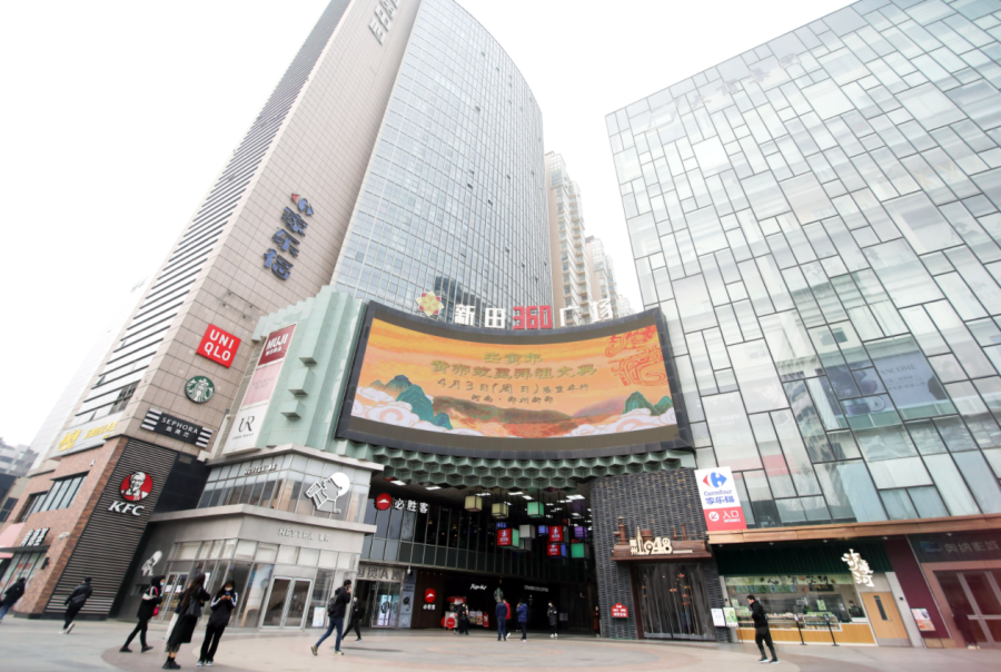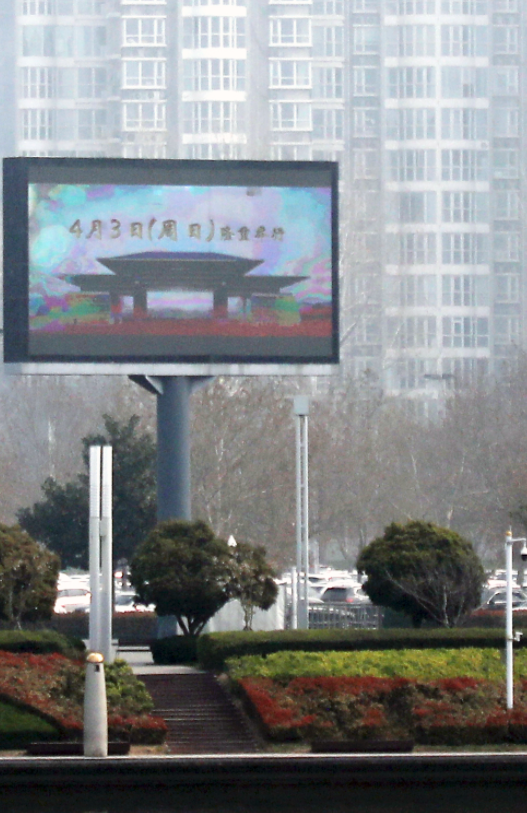 3月22日,记者在花园路新田360广场商场进口处看到,两块大屏幕滚动播放拜祖大典视宣传片,郑东新区CBD如意湖畔的屏幕也有拜祖大典的宣传内容,让人们在购物休闲之际都能感受到浓厚的拜祖氛围。