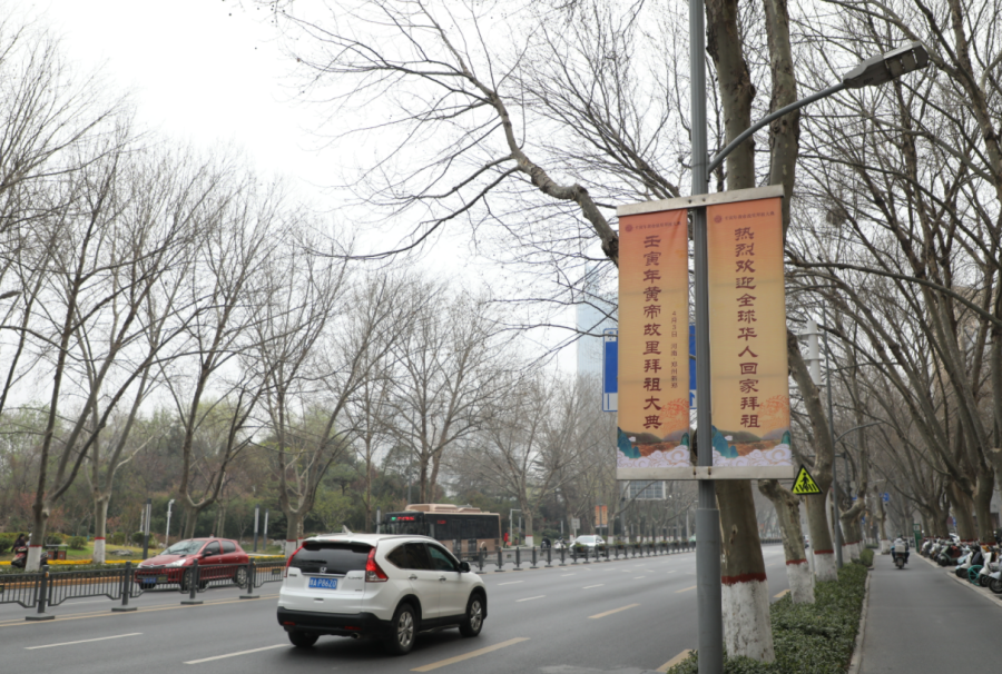 记者从郑州市城市管理局获悉,截至3月22日6时30分,有关“拜祖主题”的灯杆幕旗已在多条道路两边安装,其中中州大道高架(农业路-连霍高速)172杆,中州大道高架(陇海路-南四环)190杆,中州大道(青年路-大河路)250杆,文化路(农业路-大河路)180杆,建设路(桐柏路-西四环)110杆,迎宾路(迎宾馆-中州大道)80杆,嵩山路(建设路-南三环)158杆,天河路(连霍高速-大河路)70杆,农业路(文化路-花园路)42杆。