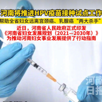 为了帮助全省妇女远离宫颈癌、乳腺癌“两大杀手”,规划提出,河南将完善宫颈癌和乳腺癌综合防治体系和救助政策,提高妇女宫颈癌和乳腺癌防治意识和能力,让宫颈癌和乳腺癌防治知识知晓率达到90%以上;推进适龄妇女人乳头瘤病毒(HPV)疫苗接种试点工作;落实基本公共卫生服务中农村妇女宫颈癌和乳腺癌检查项目,促进70%的妇女在35岁—45岁接受高效宫颈癌筛查;督促用人单位落实女职工保健工作规定,定期进行女职工宫颈癌和乳腺癌筛查。