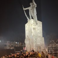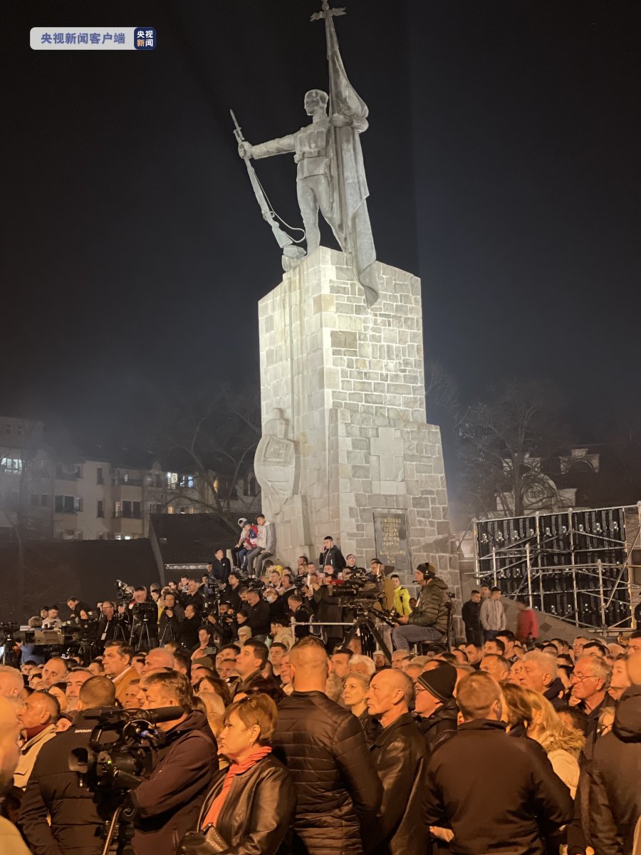 △活动举办地塞尔维亚战士广场聚集了众多参加悼念活动的民众