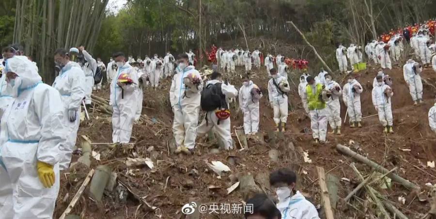 3月27日下午,“ 3·21 ”东航MU5735航空器飞行事故遇难者集体哀悼活动在事发地搜救现场举行,对遇难者表示哀悼。国务委员王勇参加哀悼活动。