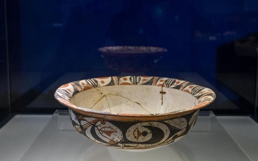 大河村遗址出土的白衣彩陶盆。
