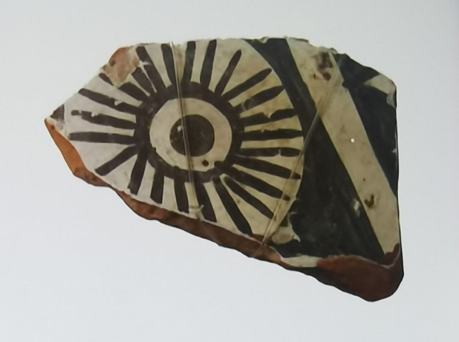 除了双连壶,2014年,在大河村遗址博物馆改造消防水池过程中还出土了白衣彩陶盆。该盆为泥质红陶,内壁和上腹部均施白衣,口沿饰以红彩直线纹、白彩弧形三角纹、红彩圆点纹、黑彩弧线纹等组成的4组相同图案,腹部饰以黑彩月亮纹、弧形三角纹、黑点纹等组成的4组相同图案,表明古人在绘制陶器花纹时已经采用对称等分的手法。