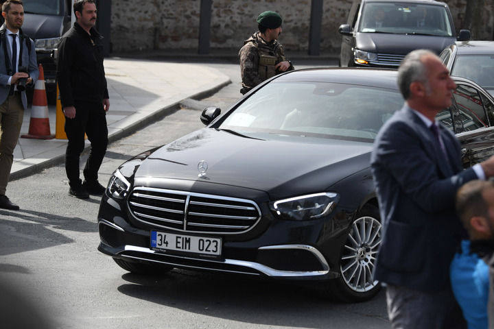 3月29日,在土耳其伊斯坦布尔,乌克兰代表团车队离开会谈现场。新华社记者 沙达提 摄