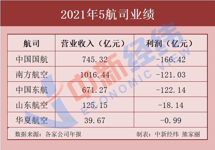 5家航空公司2021年业绩出炉!国航、东航、南航亏超百亿
