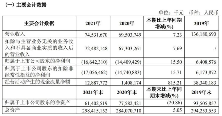 2021年,中国国航实现营业收入745.32亿元,同比增加7.23%。其中,主营业务收入为724.82亿元,同比增加7.69%,其他业务收入为20.50亿元,同比减少6.86%。归属于上市公司股东的净利润亏损166.42亿元。