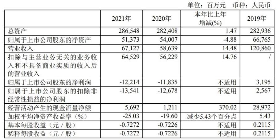 年报显示,2021年,中国东航完成运输总周转量130.5亿吨公里,旅客运输量7909.9万人次,实现营业收入人民币671.3亿元,较2020年分别增长11.5%、6.0%、14.5%;受国际油价上涨等因素影响,营业成本较2020年增加人民币92.4亿元;公司2021年归属于上市公司股东的净利润亏损122.1亿元,相比2020年增亏人民币3.8亿元。