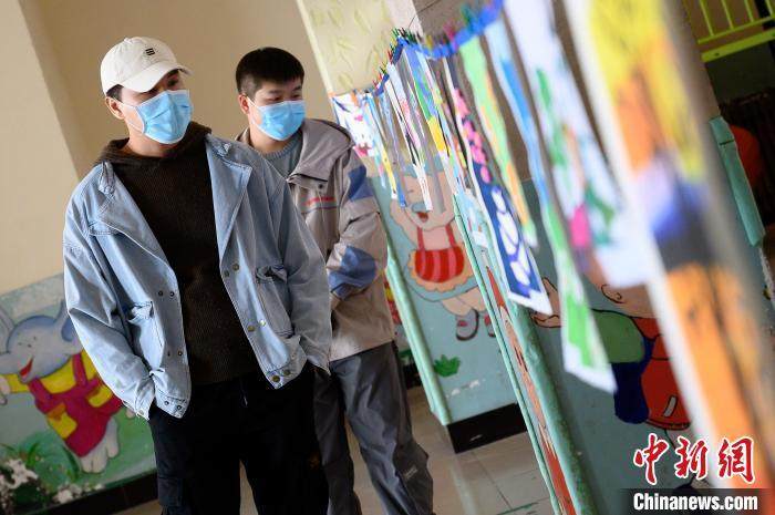图为市民观看自闭症儿童画展。 陈植炜 摄
