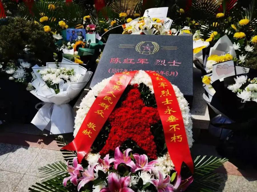 陈红军烈士墓前摆满鲜花,还有一张“全家福”