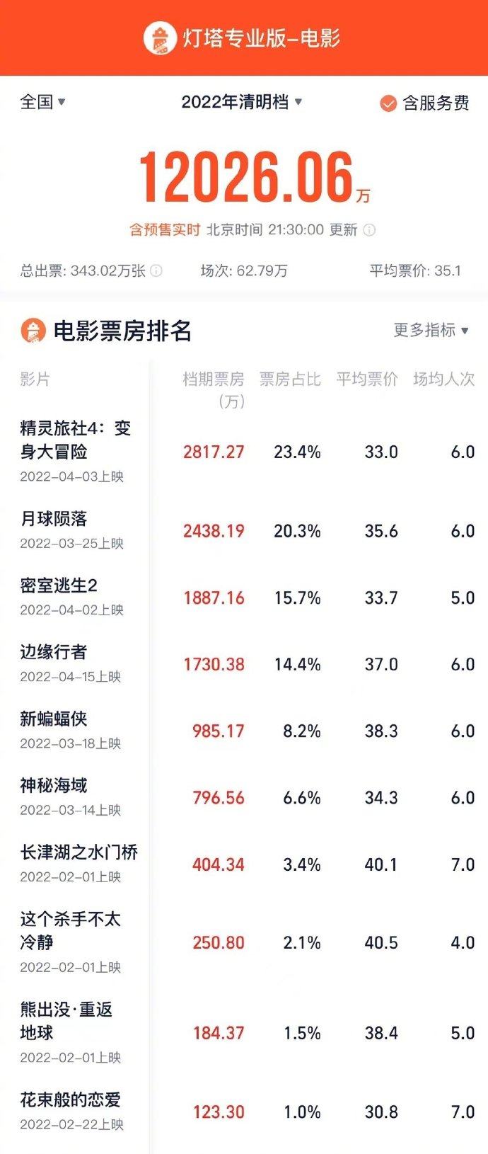 2022清明档总票房1.2亿,创近10年该档期票房最低值