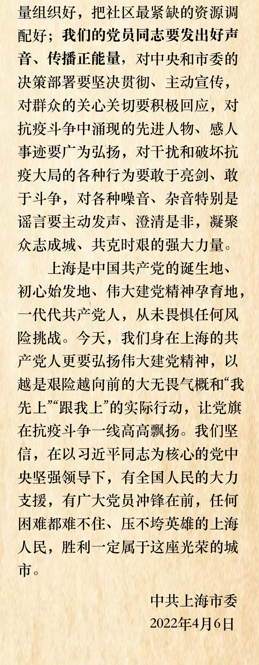 上海市委致全市共产党员的公开信:关键时刻冲得上去