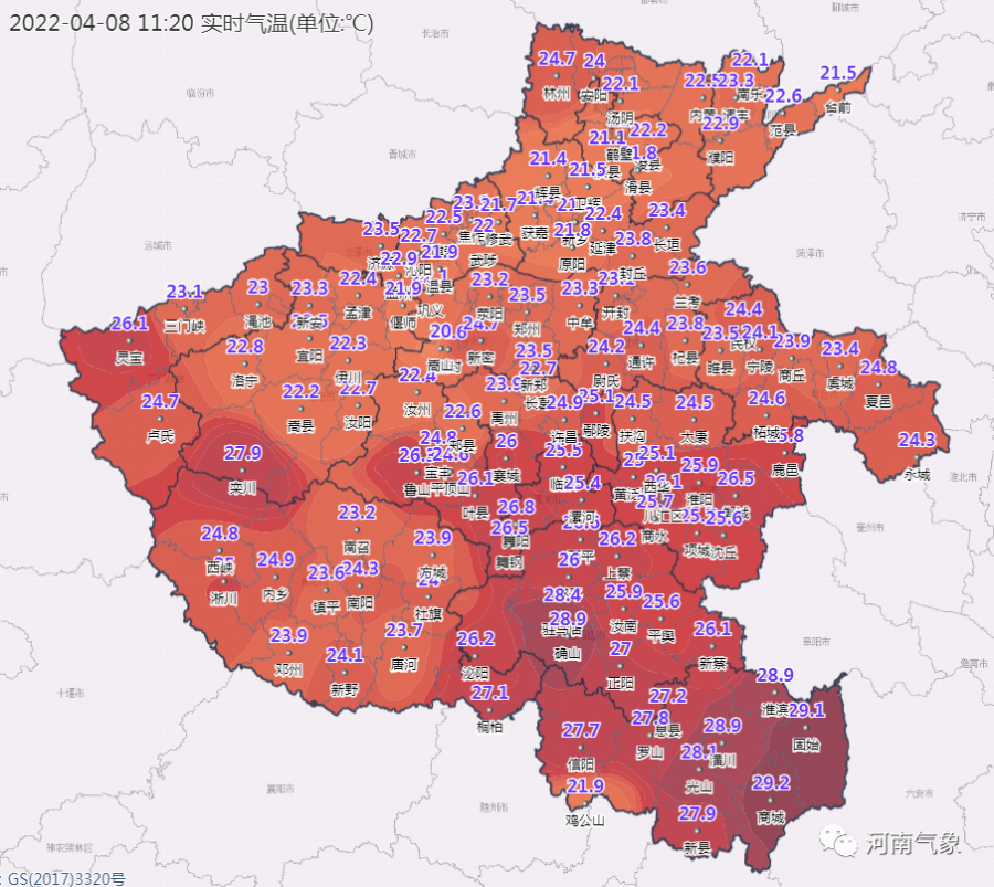 河南大部地区的最高温度在30℃以上