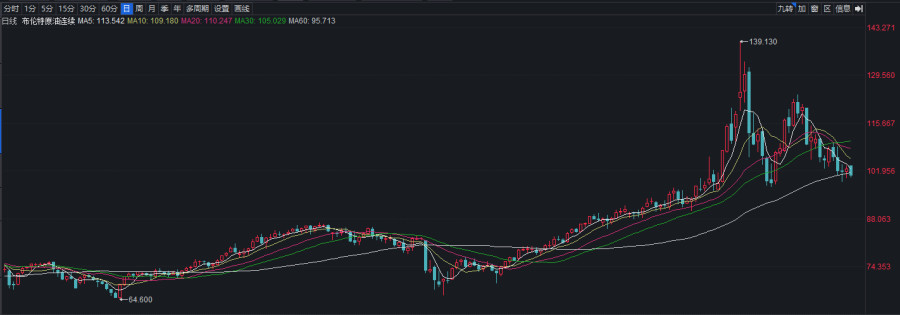 布伦特原油连续日K走势图